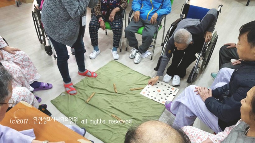 어르신들의 재미, 신체건강, 협동심 복합적으로 다룰 수 있는 전통놀이 중 팀 전 윷놀이를 즐겨보았습니다