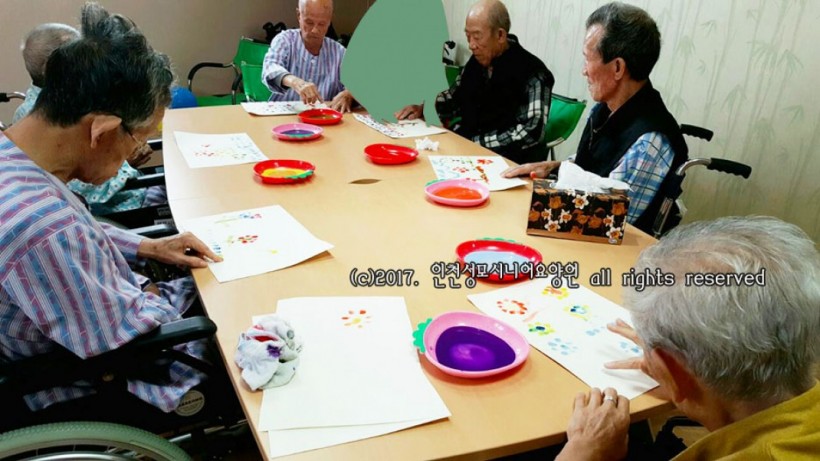 물감을 찍어 멋진 그림과 성함 석자를 그려주시면서 저희들은 어르신들의 속마음을 유추해 더 필요한 것들을 찾아보는 서로에게 유익한 시간이었습니다