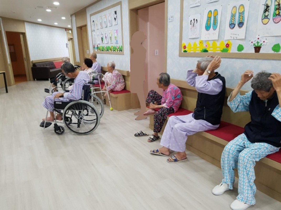 틈틈이 건강체조를 하시는 어르신들 모습입니다