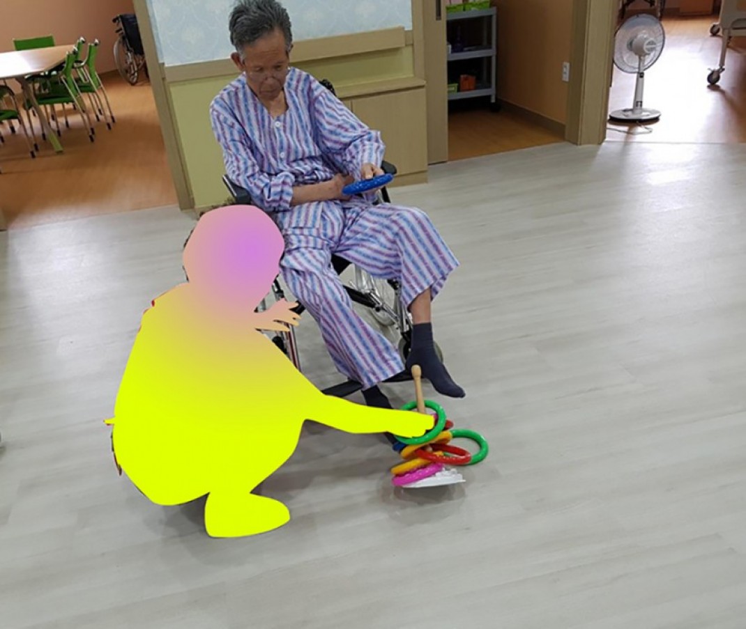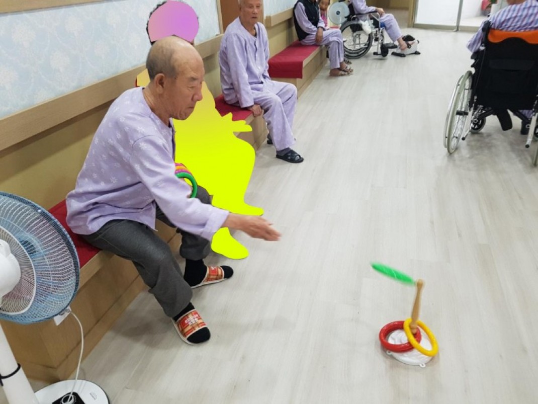 어르신들의 집중력을 높이는 고리던지기 놀이를 해보았습니다