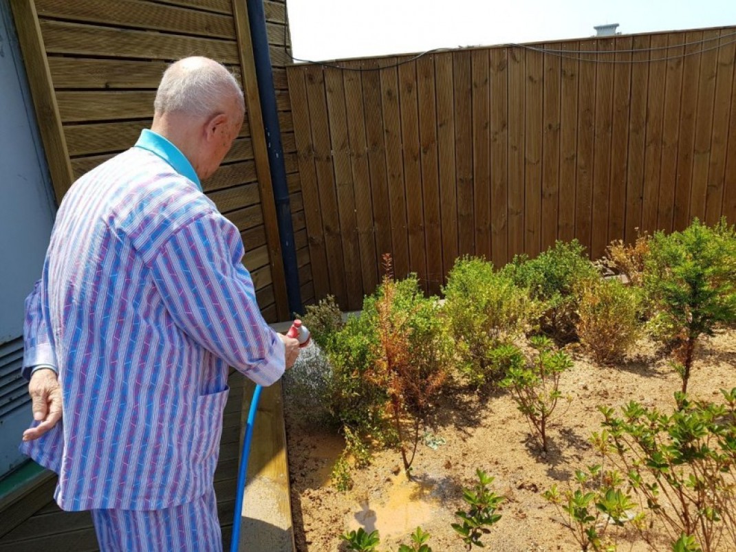 저번에 어르신들이 심은 상추도 보살피며 본인께서 직접 호스로 물도 주신답니다